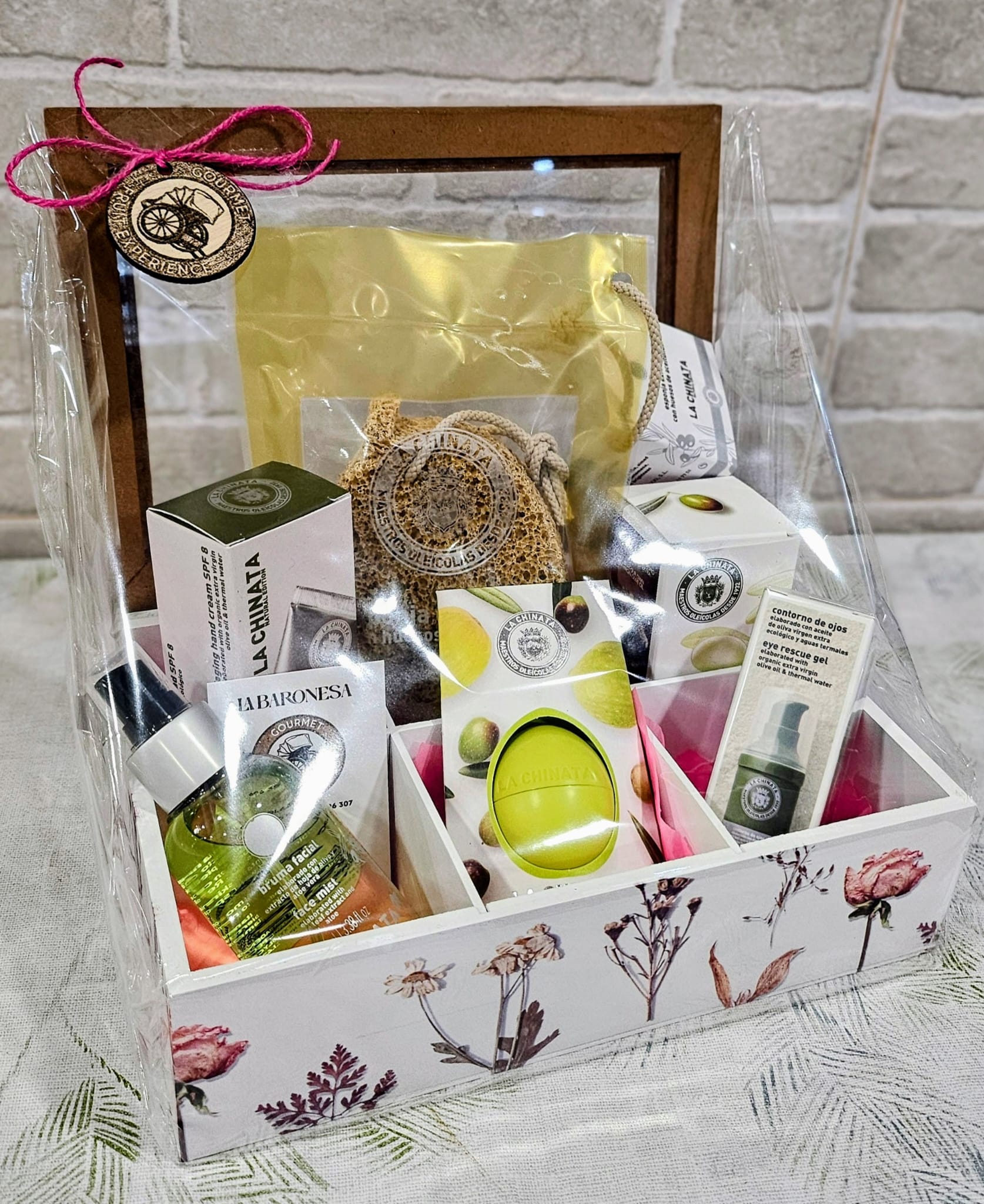 Este no es un regalo convencional; es una pieza decorativa que contiene un ritual de cuidado completo. Presentado en una exclusiva caja de madera maciza con divisiones, destaca por su elegante frontal ilustrado con motivos botánicos vintage. Una caja diseñada para perdurar y ser reutilizada como organizador de tesoros en el hogar.