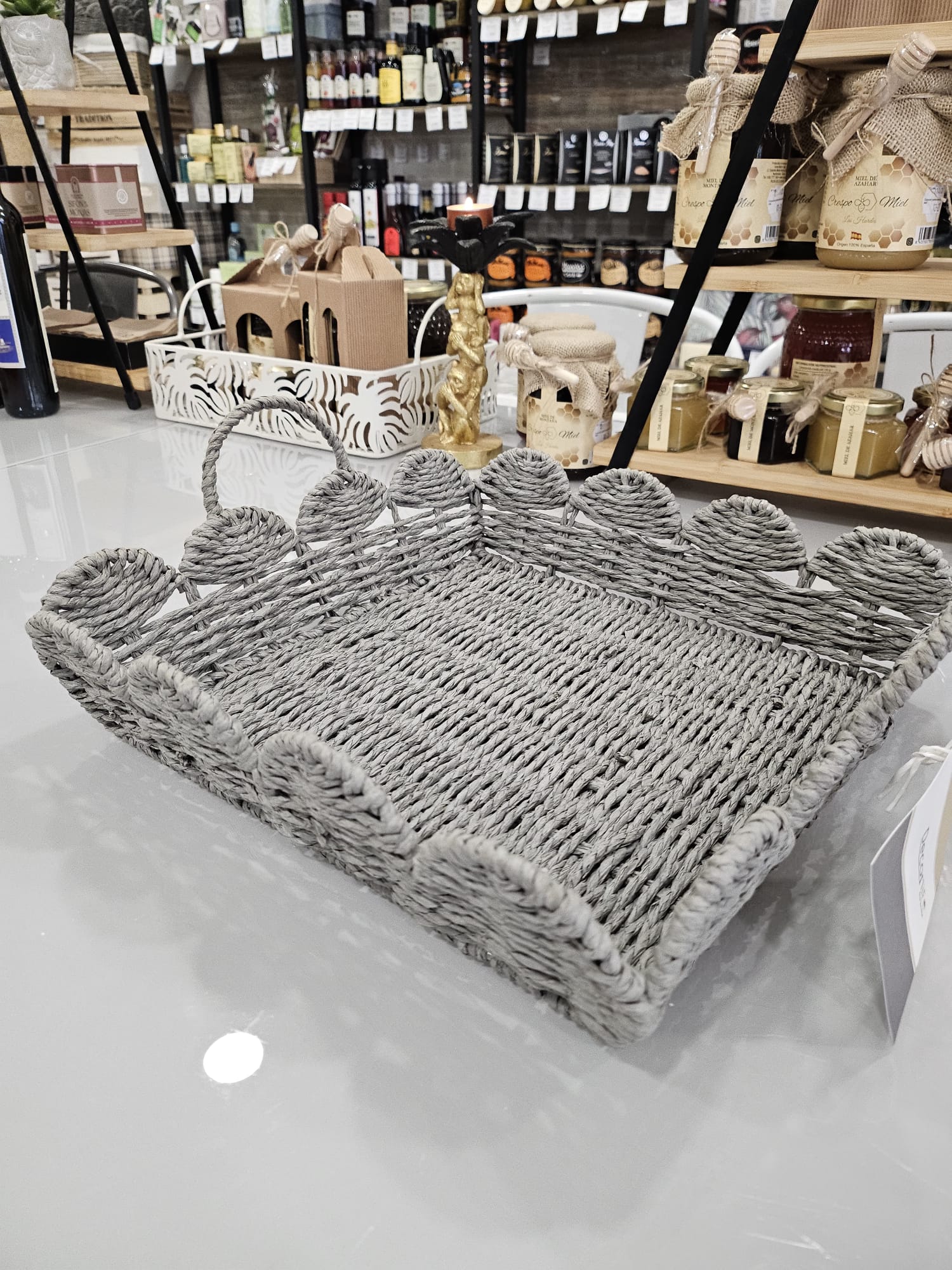Cesta de Mimbre Bicolor: Base artesana trenzada a mano, muy resistente y con un diseño decorativo perfecto para reutilizar en casa.