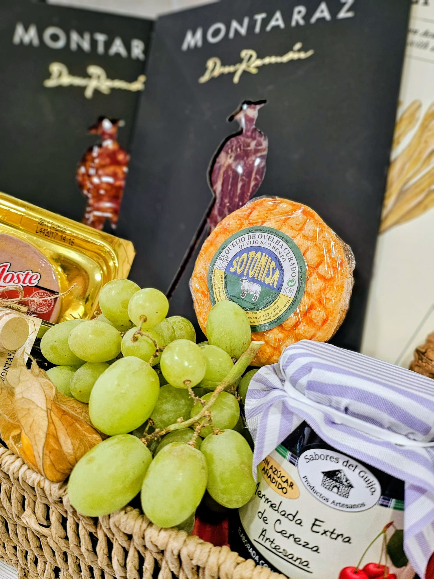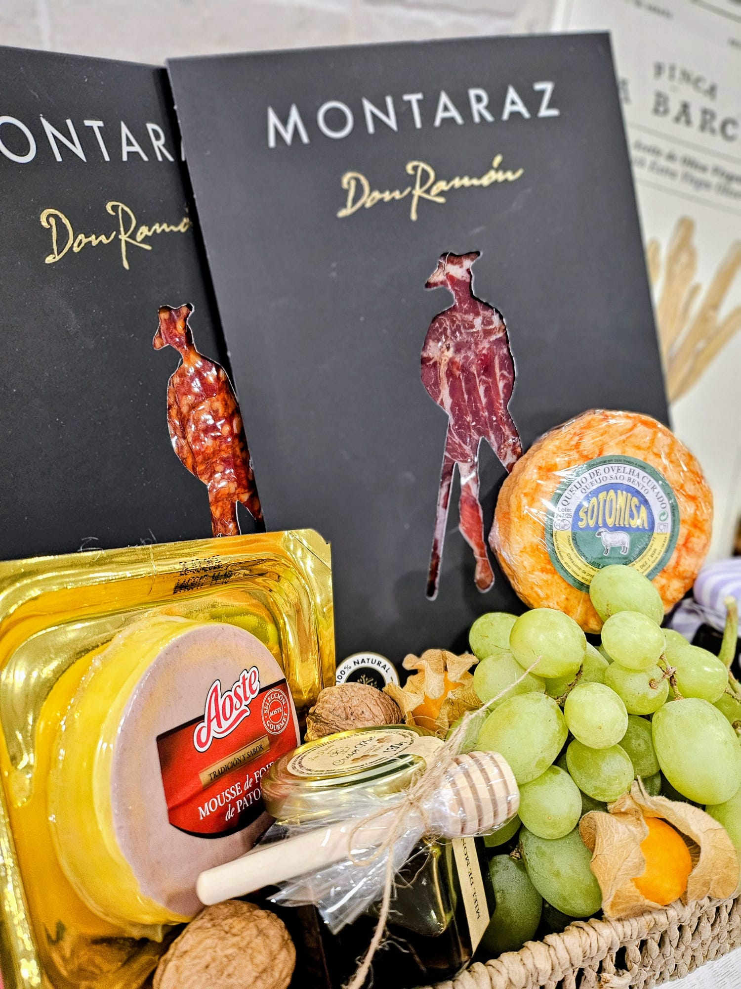 • Ibéricos de Autor (Montaraz – Don Ramón): Dos estuches premium de embutido ibérico cortado a cuchillo, símbolo de calidad y sabor auténtico de la dehesa.