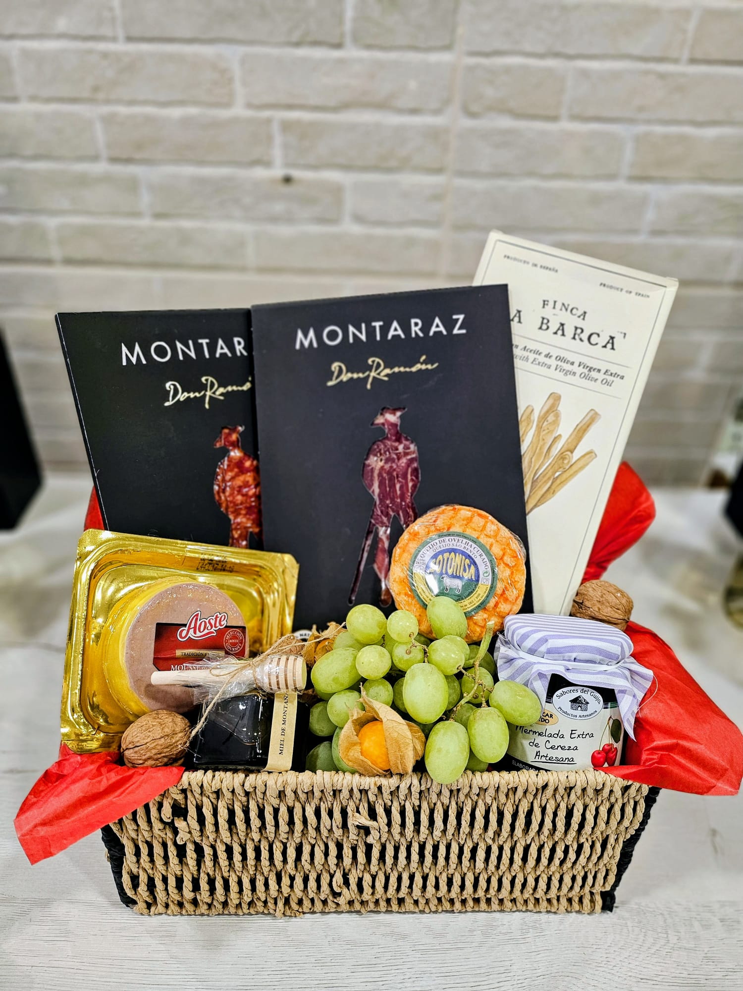 Presentación Impecable: Montada sobre papel de seda rojo vibrante que resalta la calidad de cada producto. Versatilidad: Perfecta tanto para un aperitivo de lujo en casa como para un regalo sofisticado. Calidad Garantizada: Solo trabajamos con marcas de renombre que aseguran una experiencia gastronómica de primer nivel.