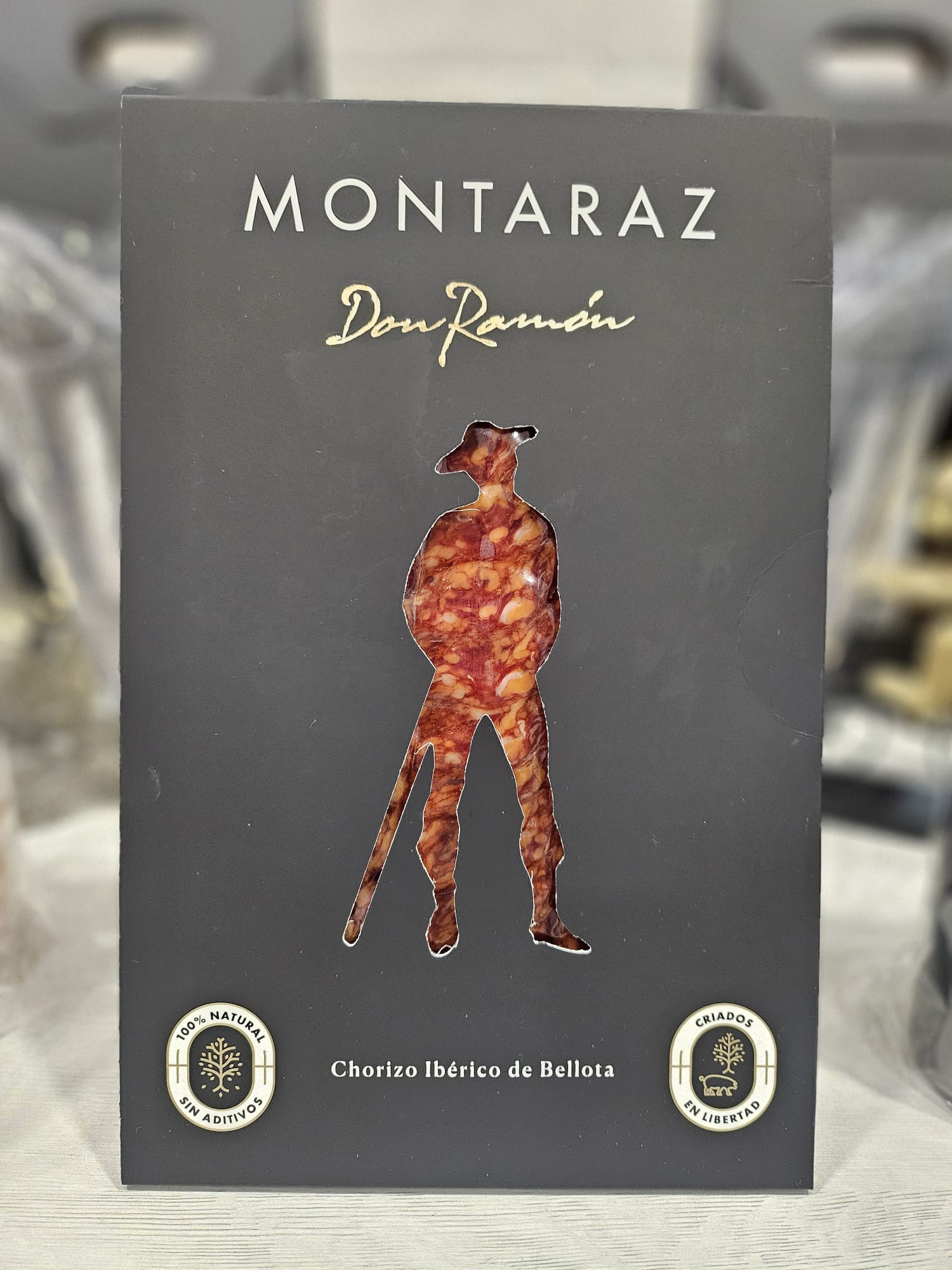 El Chorizo de Bellota de Don Ramón de Montaraz es un homenaje a la receta tradicional de Salamanca. Elaborado con los cortes más nobles del cerdo 100% ibérico, picados de forma gruesa para mantener la textura original y adobados con especias naturales de primera calidad.