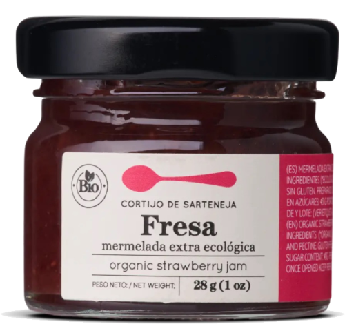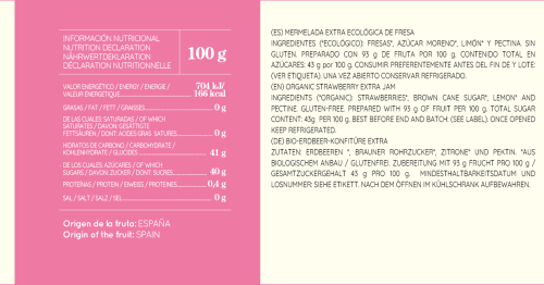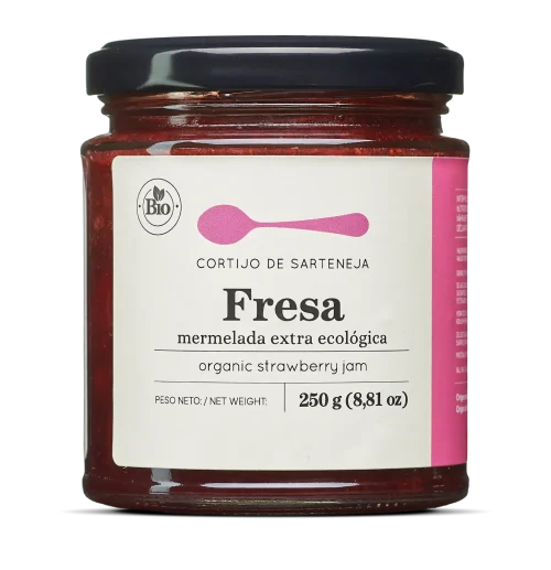 Nuestra mermelada de fresa ecológica está elaborada con fresas frescas y azúcar moreno de cultivo ecológico. Con 93g de fruta por cada 100g de mermelada y un contenido total de azúcares de 43g por cada 100g, es perfecta para tus desayunos y postres.