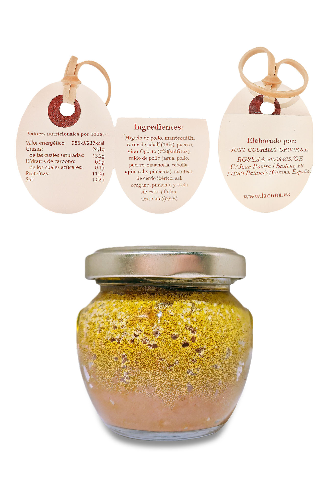 Prepárate para un viaje sensorial al corazón del bosque. El Paté de Jabalí Trufado al Oporto es la máxima expresión de la charcutería fina de La Cuna . Elaborado de forma artesanal en pequeños lotes, este paté de 85g fusiona la bravura de la carne de jabalí con el «diamante negro» de la cocina: la trufa.