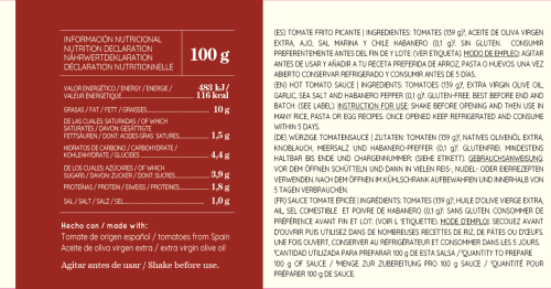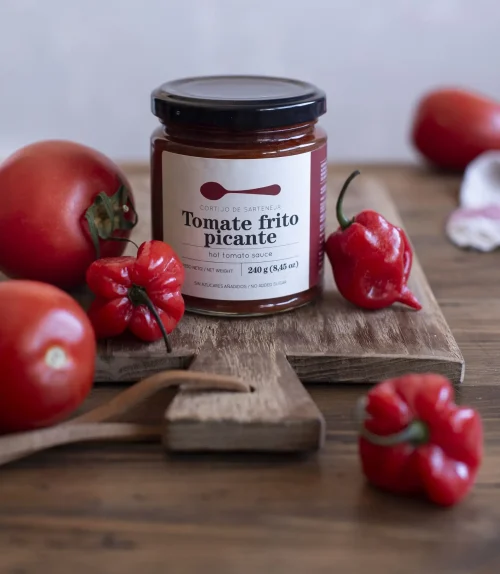 Sabor Intenso: Un sofrito lento que concentra todo el dulzor del tomate, culminando con un nivel de picante persistente y delicioso.