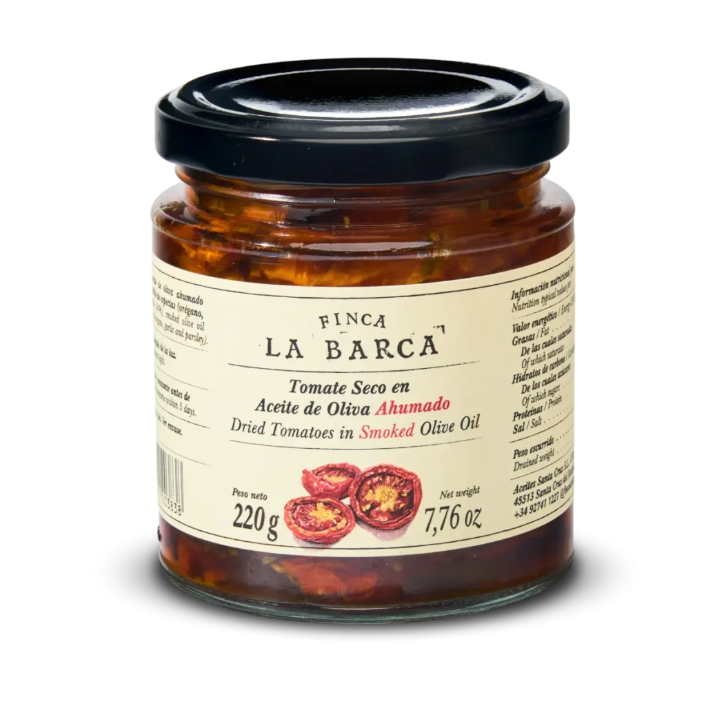 Redescubre un clásico con un giro inolvidable. Nuestros Tomates Secos han sido deshidratados lentamente al sol para concentrar todo su dulzor y umami, y posteriormente bañados en nuestro exclusivo Aceite de Oliva Ahumado . El resultado es un bocado intenso, carnoso y con una profundidad de sabor que solo el toque de la brasa puede conseguir.